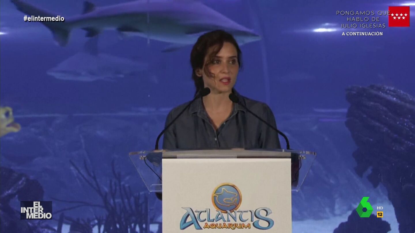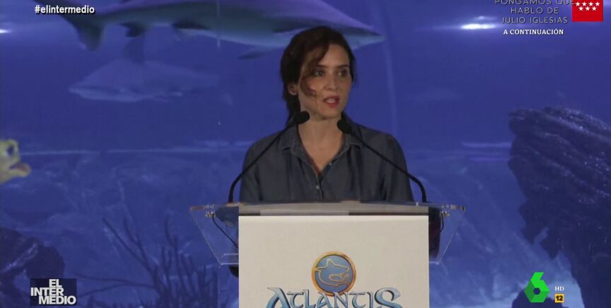 En este montaje de El Intermedio, Isabel Díaz Ayuso interviene en un acto en un acuario, donde, detrás de ella, aparece un pez con un extraño comportamiento.