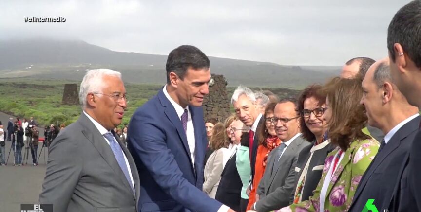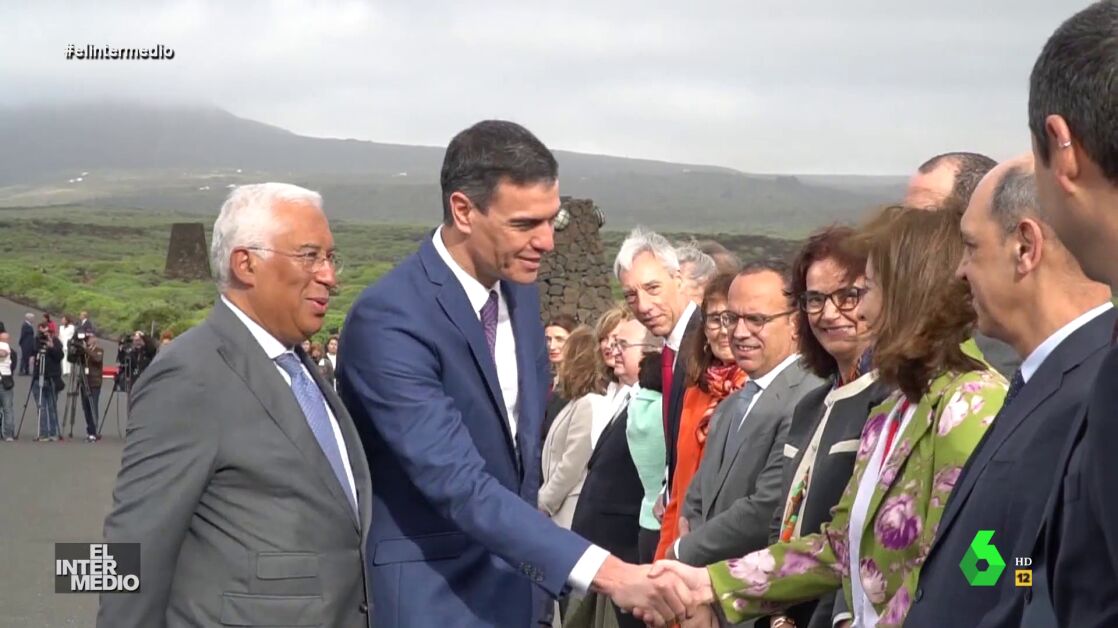 En este montaje de El Intermedio, Pedro Sánchez saluda a varias personas que se encuentran en fila esperando al presidente del Gobierno y que son presentadas todas como la misma persona: Julio Fernández.