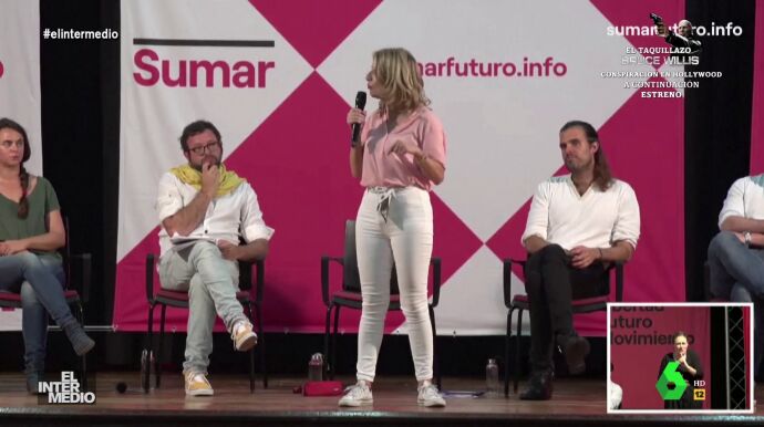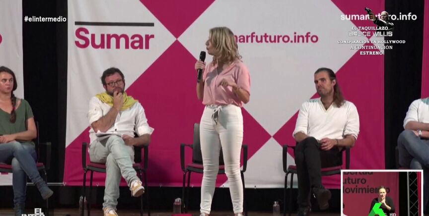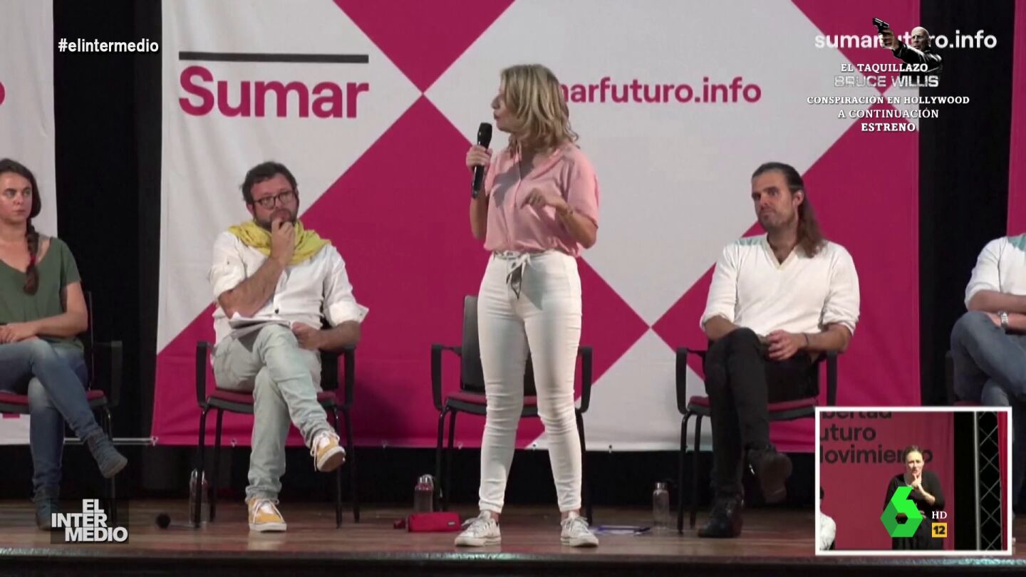 En este montaje de El Intermedio puedes ver cómo Yolanda Díaz se convierte en una entrenadora de aeróbic en pleno acto de Sumar y da una clase a los presentes.