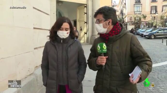 En este vídeo manipulado de El Intermedio se muestra a la presidenta de la Comunidad de Madrid evitando responder a las preguntas de Jaime Rull, periodista de laSexta.