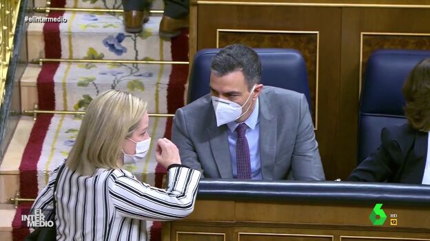 En este montaje de El Intermedio, Ana Oramas, diputada de Coalición Canaria, charla con el presidente de Gobierno antes de una sesión del Congreso de los Diputados y le confiesa sus dudas más íntimas. "¿Por qué mi marido ya no me desea?, ¿qué pasa aquí?, si ya no me quiere y no me desea... ¿es mi culpa porque yo me veo mal? No", mantiene la diputada.