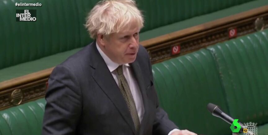 En este montaje de El Intermedio se puede ver cómo el primer ministro británico, Boris Johnson, interviene en el parlamento inglés para recitar con tono sobrio la novela española de 'Don Quijote de la Mancha'.