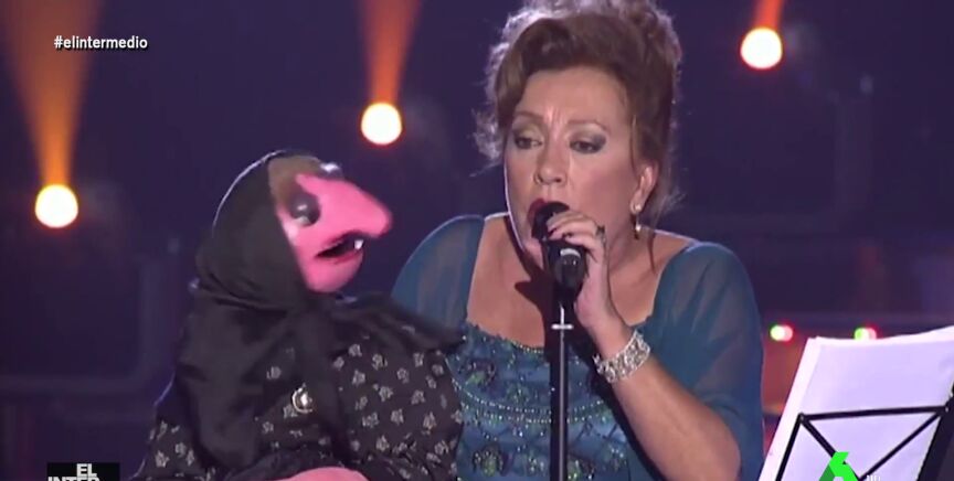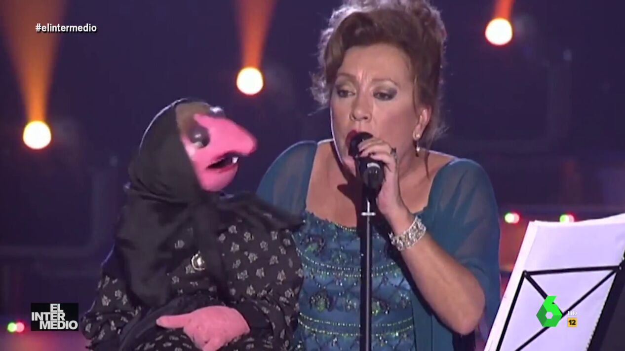 En este montaje de El Intermedio, Mari Carmen y sus muñecos discute con Rocío Monasterio, que da vida a doña Rogelia.