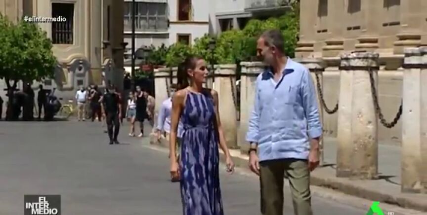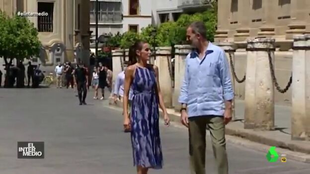 En este vídeo manipulado de El Intermedio se muestra un montaje de los actos de Letizia y Felipe VI en nuestro país. En este fragmento se puede escuchar el 'grito' de la reina ante una pregunta del rey que no se escuchó en televisión.