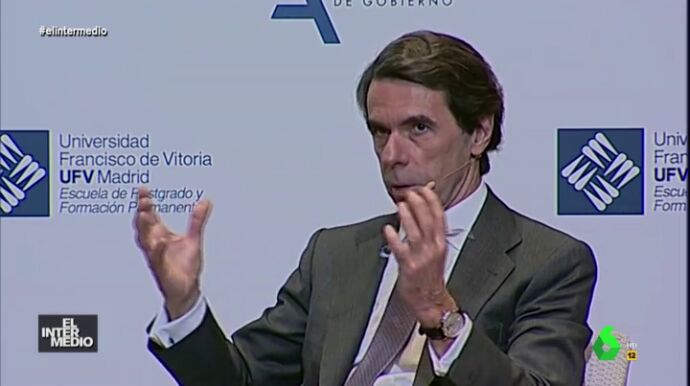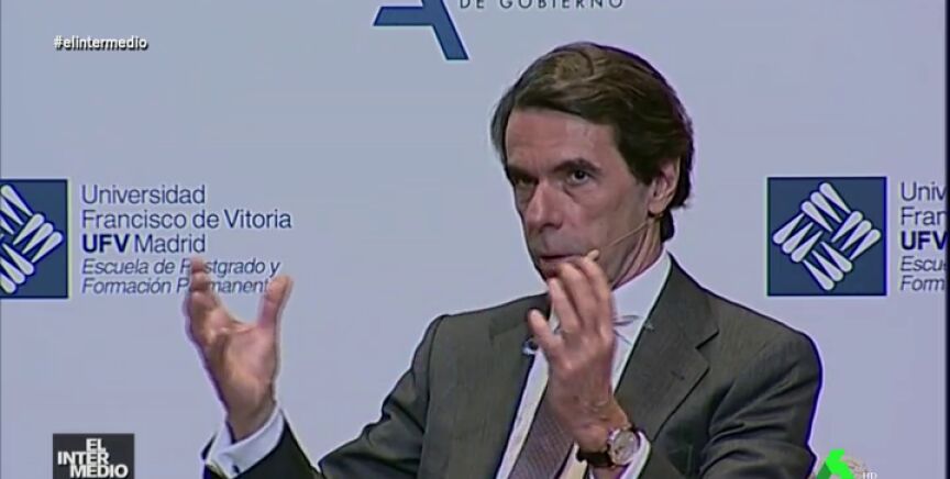 En este montaje de El Intermedio, el expresidente del Gobierno, José María Aznar, realiza unas llamativas declaraciones que dejan muy alucinado al líder del PP, Pablo Casado.