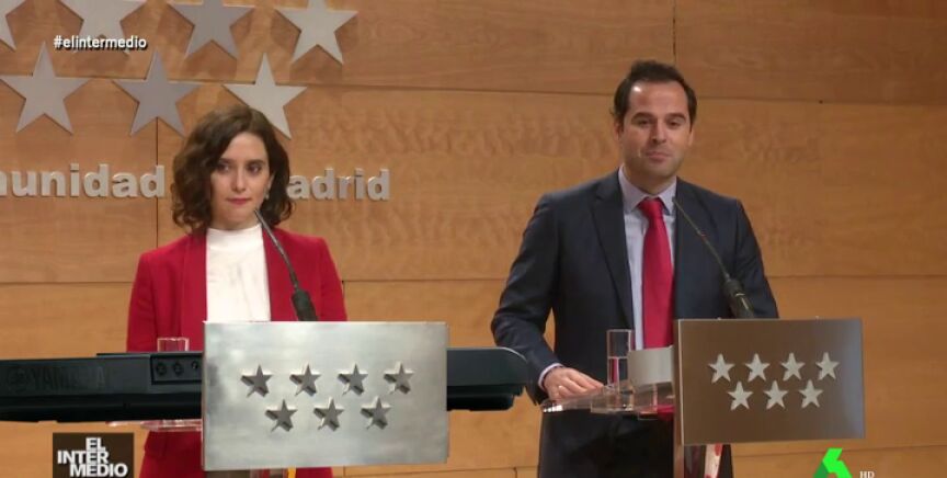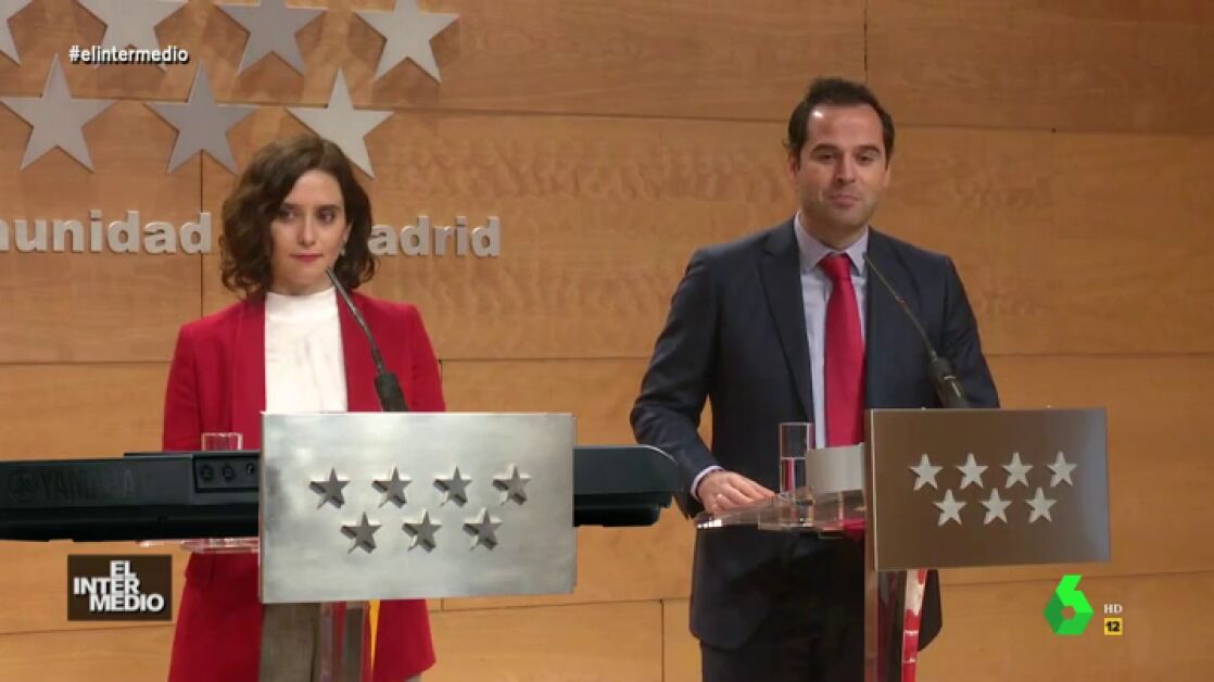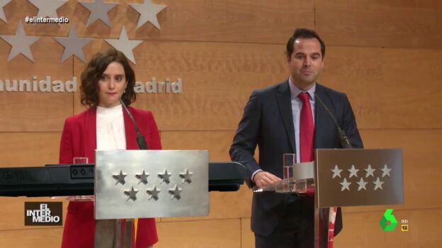 El vicepresidente de la Comunidad de Madrid Ignacio Aguado ha ofrecido una rueda de prensa junto a la presidenta madrileña Isabel Díaz Ayuso. Una convocatoria para dar buenas noticias y a la que la popular ha puesto banda sonora tocando el piano como puedes ver en este montaje de El Intermedio.