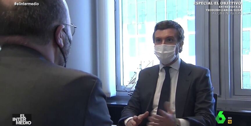 En este montaje de El Intermedio, Pablo Casado charla con alguien que está todavía peor que él. Cuando este hombre le cuenta lo que va a hacer, a Casado no le parece una mala idea.