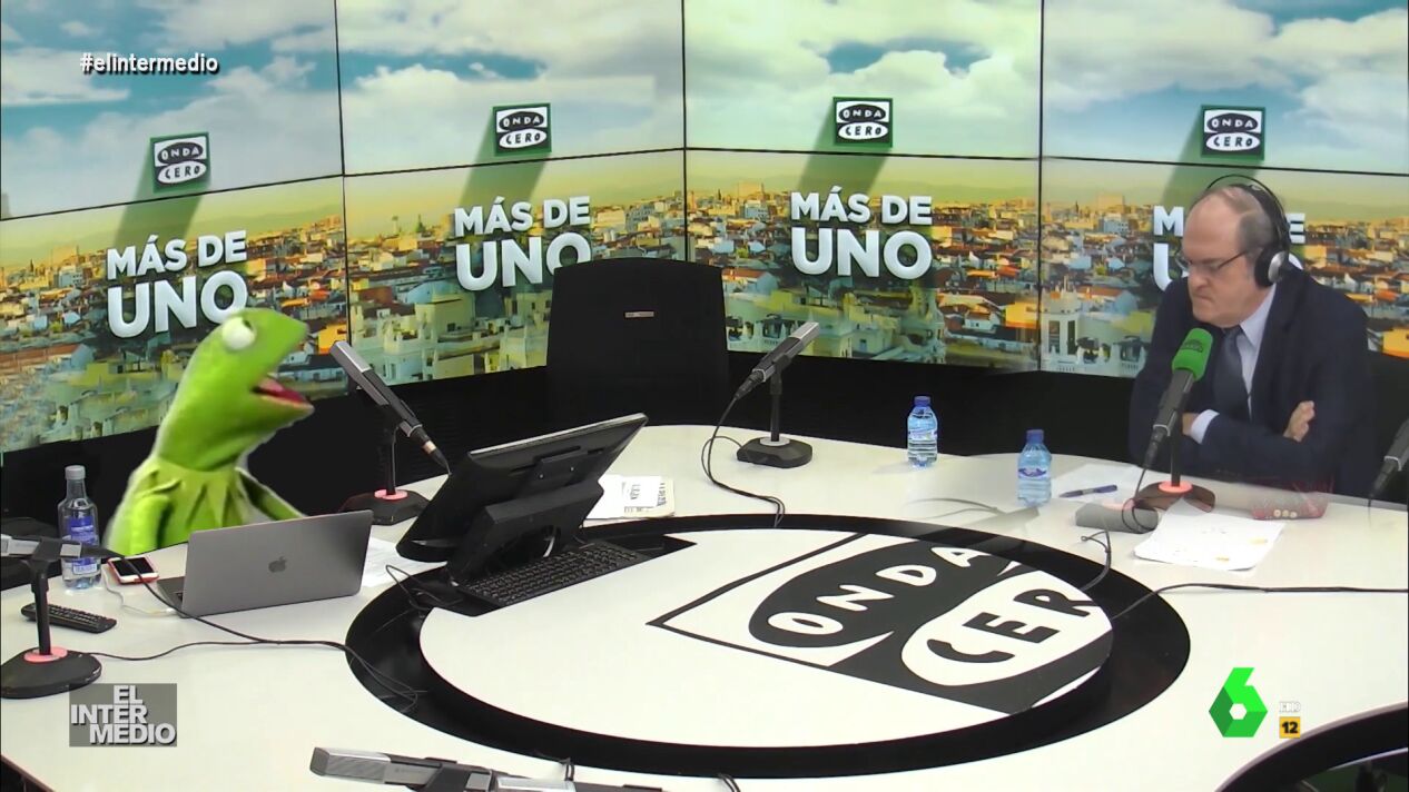 El reportero más dicharachero de Barrio Sésamo, la rana Gustavo, entrevista en este montaje de El Intermedio al candidato del PSOE a las elecciones madrileñas, Ángel Gabilondo, o como la rana lo presenta: 'El hombre invisible', famoso porque aunque esté no se le puede ver.