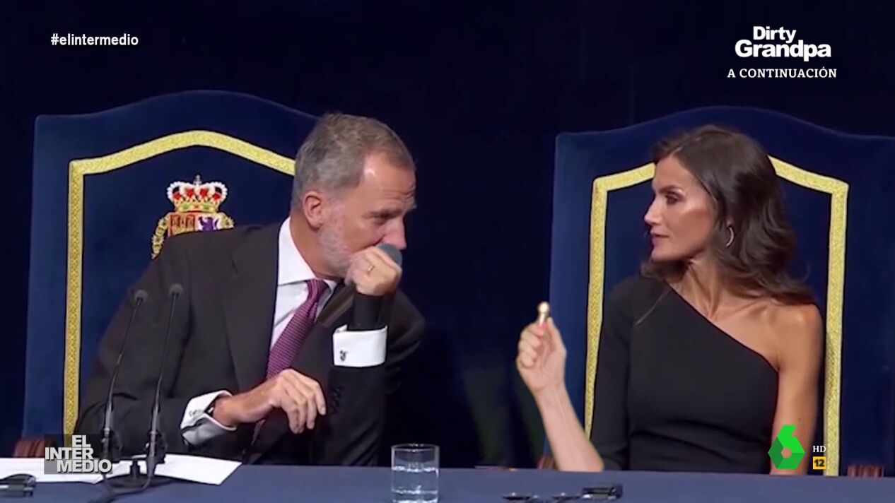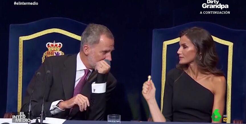 En este montaje de El Intermedio, el rey Felipe VI canta a la reina Letizia 'Bachata rosa', la conocida canción de Juan Luis Guerra en pleno acto y con micrófono incluido. Puedes verlo en este vídeo manipulado.