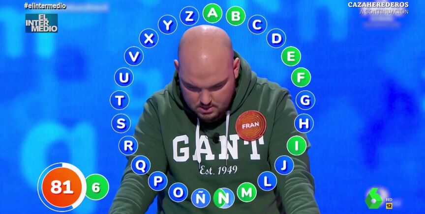 En este montaje de El Intermedio, un concursante del rosco final de Pasapalabra contesta de forma correcta a todos los votos obtenidos por los candidatos a participar en Eurovisión.
