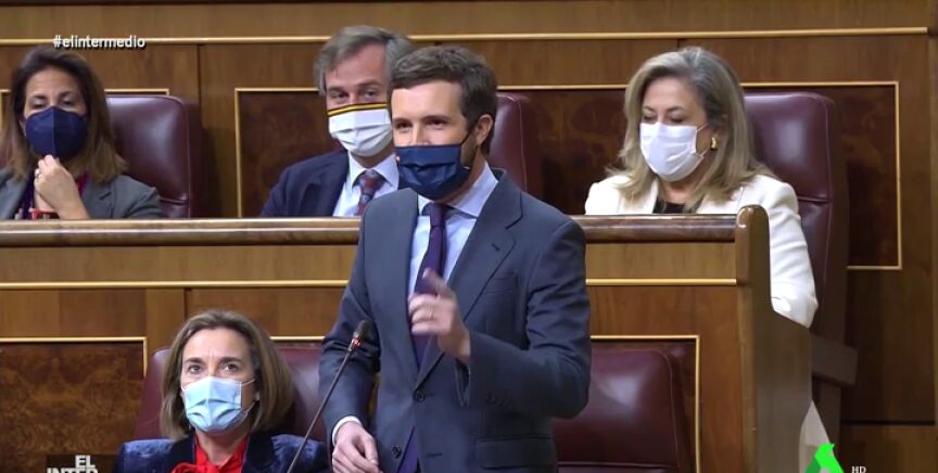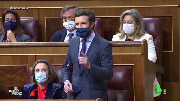 En este vídeo manipulado de El Intermedio aparece el presidente del Gobierno, Pedro Sánchez, y el líder del Partido Popular, Pablo Casado, cantándose en el Congreso de los Diputados la canción 'Bueno para ti, malo para mí' del dúo Pancho y Javi, de 'Verano Azul'.