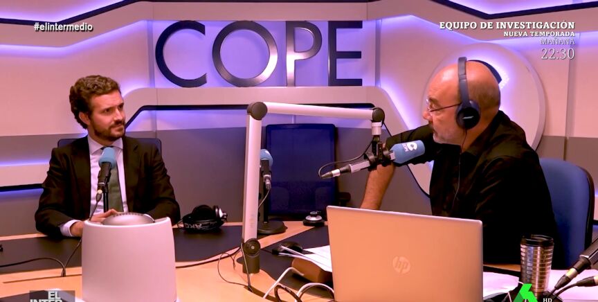 En este montaje de El Intermedio, Pablo Casado protagoniza un incómodo momento al ser entrevistado en la radio. Y es que el líder del PP no quiere hablar mucho.