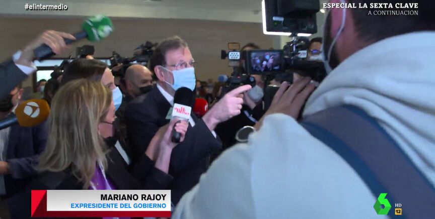 Al que fuera presidente del Gobierno de España, Andrea Ropero le ha preguntado por el nuevo "matrimonio PP - Vox", que se ha formado en esta comunidad autónoma y que ha costado a los azules tres consejerías y una vicepresidencia. "Me voy a tomar un café", ha sido la curiosa respuesta de Mariano Rajoy a su pregunta, evitando, así, dar su opinión sobre el gobierno de coalición que se ha formado. Puedes ver el momento de la llegada de Rajoy y las palabras que le dedica a la periodista de El Intermedio, en el vídeo que se encuentra sobre estas líneas.