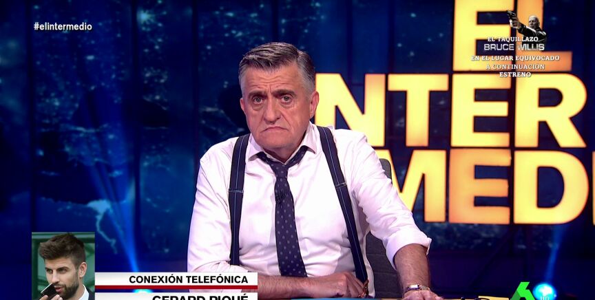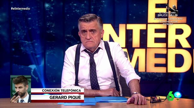 "Shakira, ¿has visto que yo también sé lanzar puñaladas?", pregunta El Gran Wyoming, que 'llama' a Gerard Piqué (imitado por Raúl Pérez) para saber sus opiniones. Puedes ver el momento al completo en el vídeo principal de esta noticia.