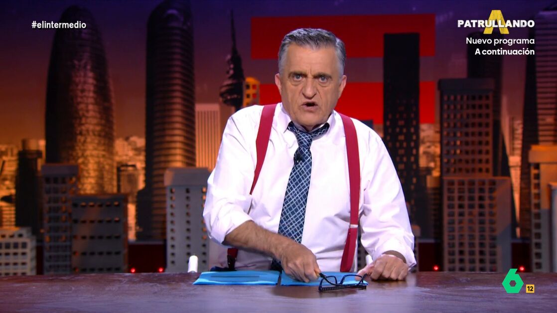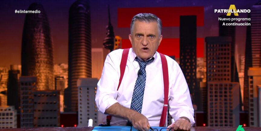 El Gran Wyoming no da crédito de la situación y se pregunta en el plató: "¿En qué momento hemos normalizado que los líderes mundiales se amenacen de muerte en redes sociales?". "Pedro Sánchez ha prohibido las redes sociales a los menores de 16 años cuando a los que habría que prohibirlo es a los líderes mundiales mayores de 60", explica y termina lamentando que "hay más testosterona en la política internacional que en el fondo sur del Bernabéu".