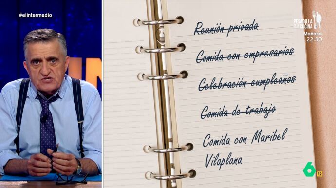 "Luego resultó ser una comida de trabajo que, curiosamente, no aparecía en su agenda oficial. Y, por último, nos enteramos que estaba con una periodista para ofrecerle dirigir la televisión pública valenciana", añade Wyoming.