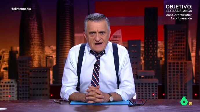 "Hay que tener en cuenta que ninguno de los dirigentes de Esquerra le ha acompañado en el acto, a lo mejor lo de 'tenemos que hablar' se lo acaban diciendo a él antes de mandarle a dormir al sofá por haberles puesto los cuernos", afirma el presentador de El Intermedio sobre el político de ERC.