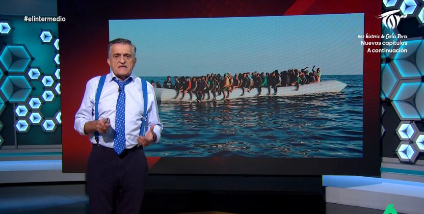 "En el último mes, ya son cinco los cadáveres que han llegado a las costas de Baleares atados de pies y manos", denunció el presentador, y añadió que "solo el pasado fin de semana llegaron a Baleares 20 pateras con 300 personas a bordo".