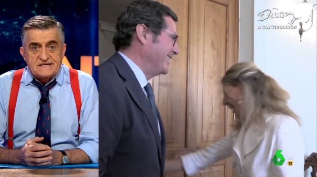 Ante este nuevo choque entre Yolanda Díaz y Antonio Garamendi, Wyoming los 'bautiza' como "nuestros 'Bennifer', aunque con peor nombre: 'Yolonio'", si bien a diferencia de Ben Affleck y Jennifer López "no tienen un acuerdo matrimonial picantón, solo el compromiso de pasarse por la piedra las propuestas del otro al menos una vez por semana".