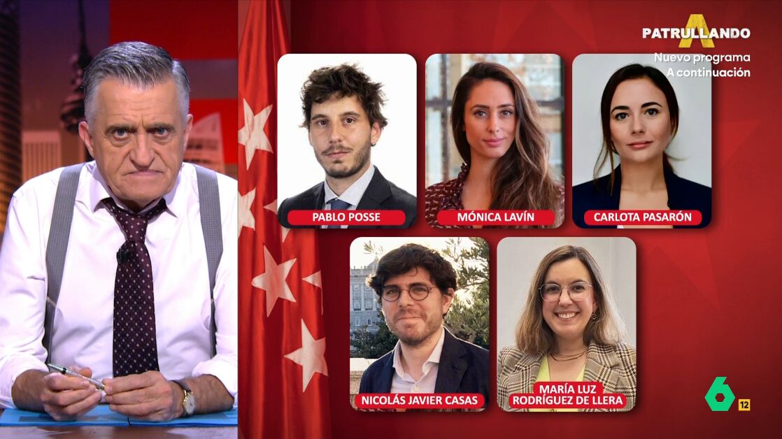 Tras analizar quiénes eran Pablo Posse, Mónica Lavín, Carlota Pasarón, Nicolás Javier Casas y María Luz Rodríguez de Llera en el Gobierno de Ayuso, al presentador de El Intermedio le surgen más dudas: "¿Ocultan algo? ¿Se han dado cuenta todos a la vez de lo que supone el Gobierno de Ayuso para la educación?", se pregunta Wyoming, que al ver sus fotos piensa que "tiene más pinta de que han dejado la política para refundar Ciudadanos".