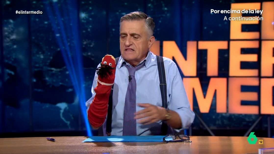 "Me da que Ayuso no tiene muy claro en qué consiste eso de la recaudación fiscal, a lo mejor ese día faltó a clase, como su novio", comenta Wyoming, que en el vídeo sobre estas líneas decide explicárselo con un calcetín.