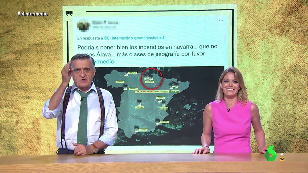 Un día más, El Gran Wyoming se enfrenta al baño de realidad de Andrea Ropero, que en esta ocasión gira en torno a un error geográfico en el mapa de los incendios de España: "Seguimos siendo fieles a nuestro estilo", afirma en este vídeo.