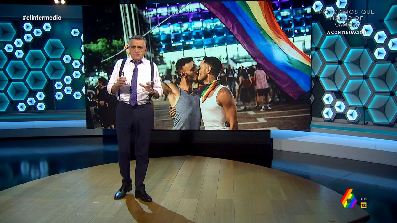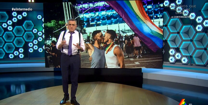 Hoy se celebra en todo el mundo el Día del OrgulloLGTBI, "una fiesta tan inclusiva que hasta los heteros estamos invitados", señala El Gran Wyoming. "Este año, más que nunca, tenemos que festejarlo porque, como veremos en el programa de hoy, los pactos entre PP y Vox están poniendo en peligro derechos ya conquistados, como la normalización y la visibilidad de la diversidad sexual", manifiesta.