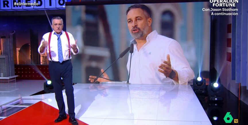 El Gran Wyoming inicia El Intermedio compartiendo unas imágenes de Santiago Abascal en el que califica de "mierda" a Pedro Sánchez y de "rata" a Fernando Grande-Marlaska. "Esta gente, como nos descuidemos, nos van a gobernar", advierte.