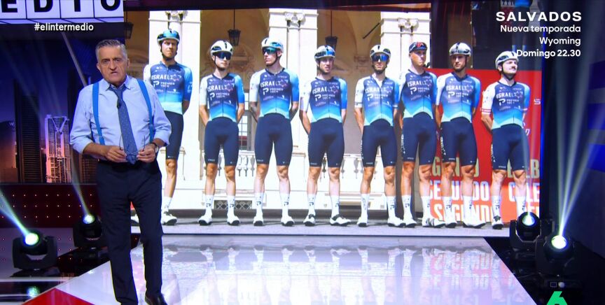 El presentador señala que "un equipo que se llama Israel no es solo deporte", pues hablamos de un equipo profesional "patrocinado por un empresario muy cercano a Netanyahu cuya única finalidad es lavar la imagen del Gobierno de Israel".