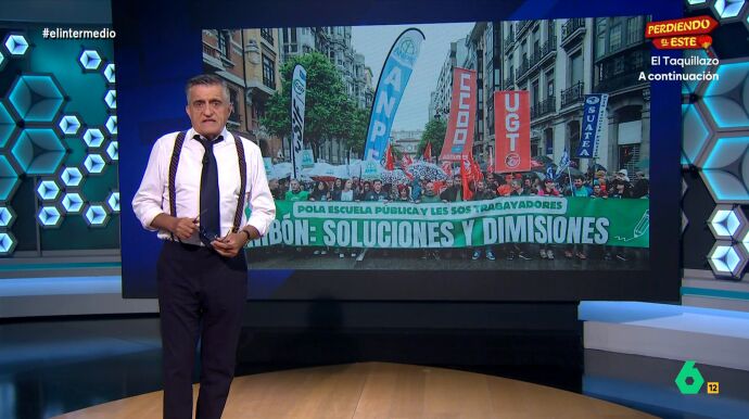 El Gran Wyoming ha dedicado su último monólogo en El Intermedio a la crisis educativa en Asturias, marcada por huelgas de profesores, dimisiones en cadena y protestas masivas. El presentador ha reclamado más apoyo a la Educación Pública y mejores condiciones laborales.