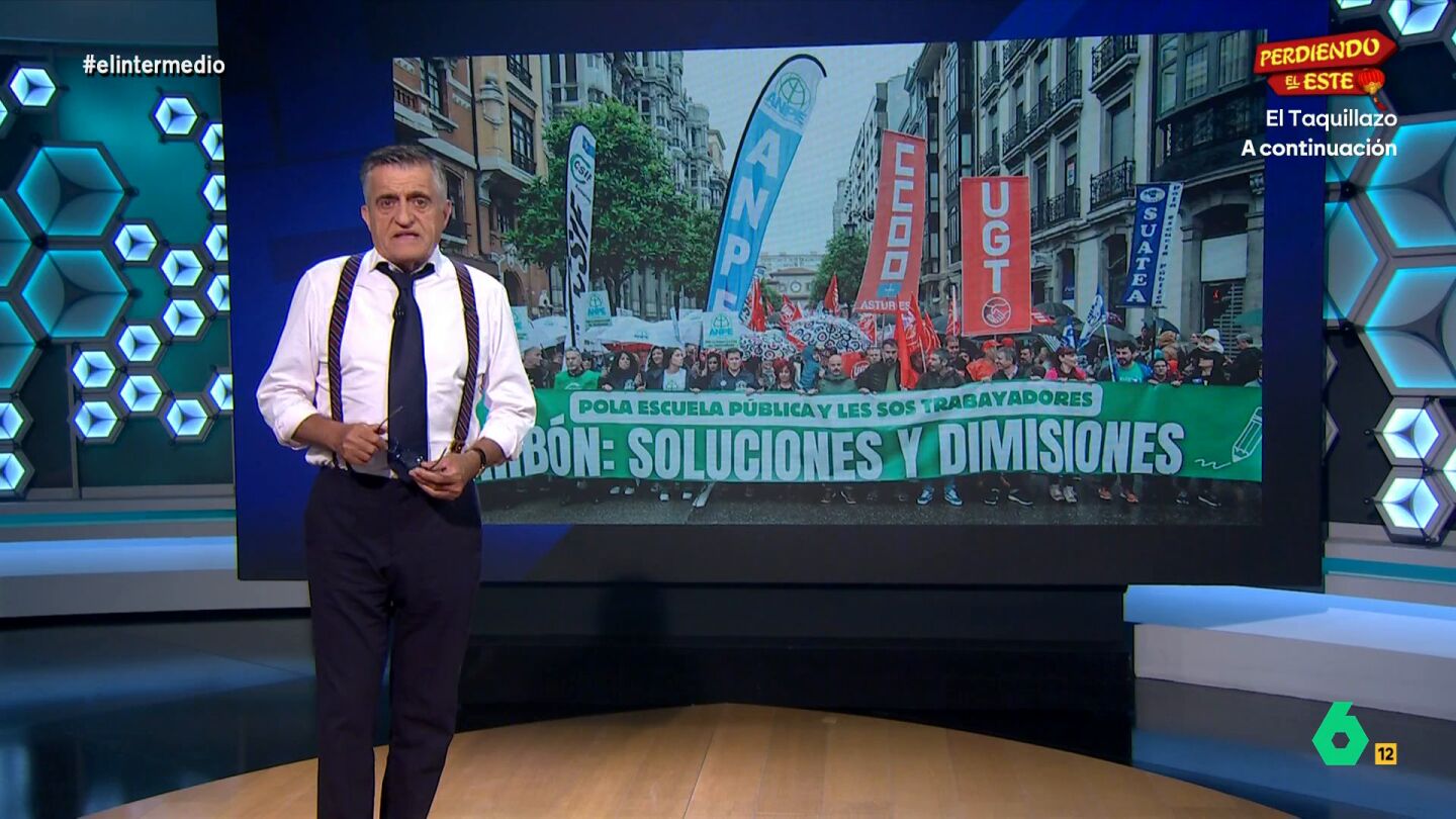 El Gran Wyoming ha centrado su monólogo en las huelgas de profesores en Asturias, donde, tras tres semanas de protestas, "por fin se ha llegado a un preacuerdo" con el Ejecutivo autonómico.