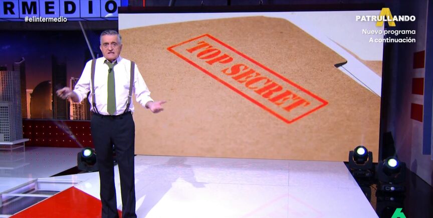 El Gran Wyoming ha arrancado El Intermedio hablando de la desclasificación de los documentos del 23F. El presentador ha ironizado sobre los secretos de aquella noche y ha aprovechado para reclamar más transparencia y una nueva ley de secretos oficiales.