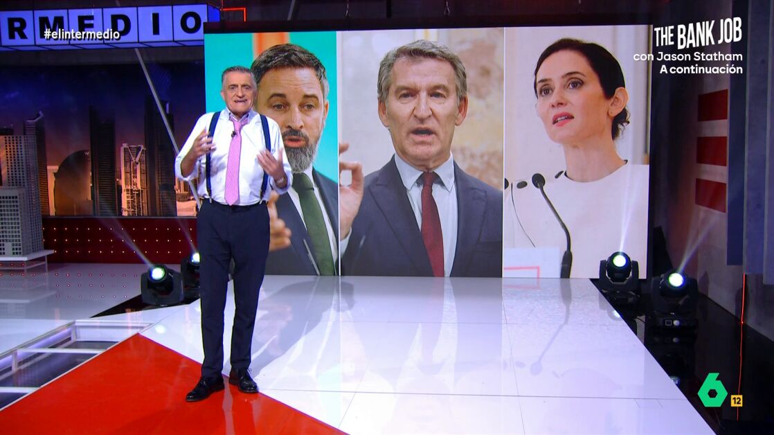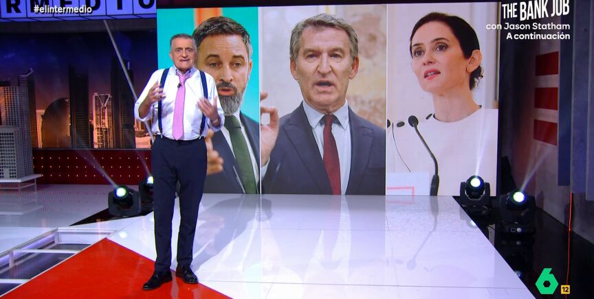El presentador señala que creen que su trabajo es "oponerse a todo lo que diga Sánchez". "Está defendiendo más España el presidente Macron que Feijóo o Abascal", señala.