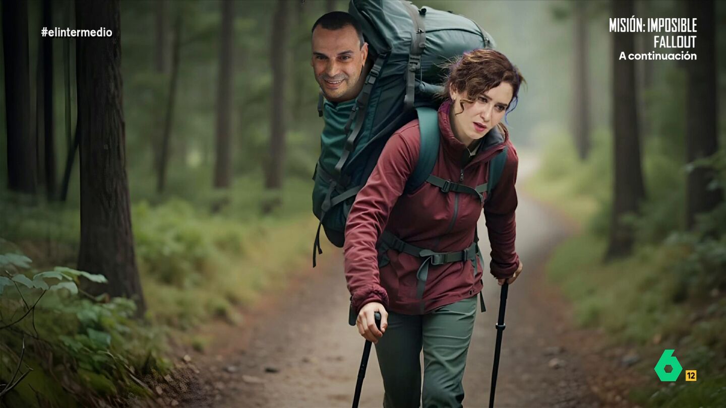 El presentador expone que todavía se desconoce cómo podrá afectar este hecho a Díaz Ayuso. "Que la presidenta madrileña tenga un novio que es defraudador confeso al que le pueden caer hasta ocho años de cárcel supone una carga cada vez mayor", concluye Wyoming, "tanto que está a punto de protagonizar 'Un paisano en la mochila'".