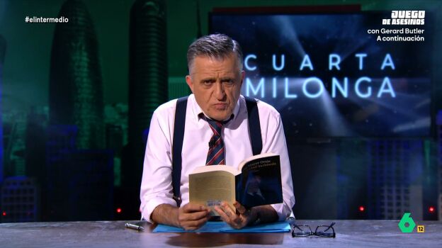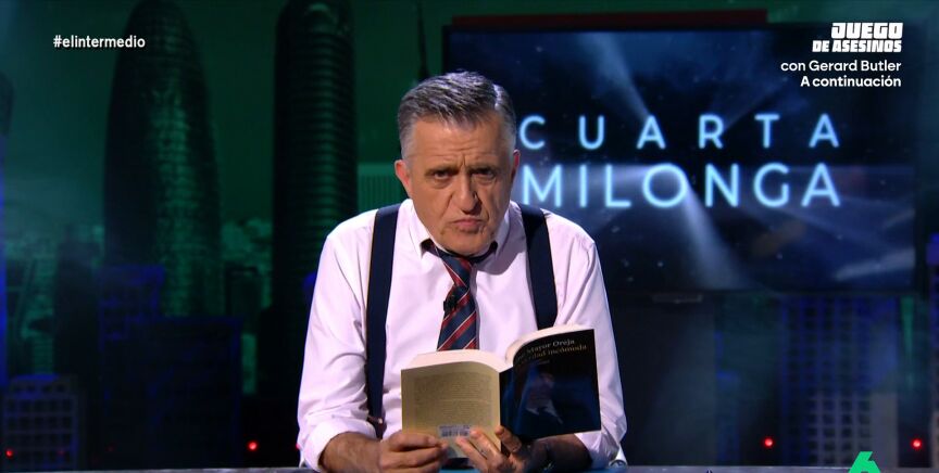 'Cuarta Milonga', el programa sobre 'conspiraciones' de El Intermedio, analiza el libro de Jaime Mayor Oreja donde desvela "secretos" que nos llevan intentando ocultar tantos años, entre ellos que, según él, vivimos en "la mentira de la sustitución de ETA" desde su pacto con Zapatero. Una "matrix socialista" según Wyoming, donde Keanu Reeves no ofrece pastilla roja o azul, sino que es Ione Belarra quien ofrece "una copa menstrual".