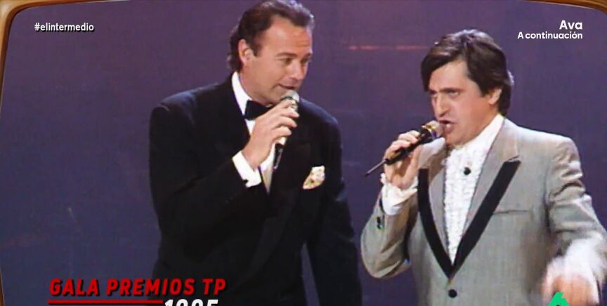 Wyoming también protagoniza un momentazo cantando 'Hasta luego cocodrilo' junto a Bertín Osborne en una gala de los TP de Oro. "Como el vino, mejoro con los años", reacciona el presentador, que añade que "de los dos galanes, yo soy el de la chaqueta". "Sois gemelos separados al nacer, por eso hubo que hacer algo para distinguiros: poneros a cantar", responde Dani Mateo.