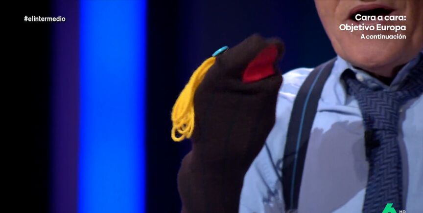 Para ello recurre a un invitado muy especial, "experto en relaciones internacionales": Mister Calceto. Wyoming le pregunta al calcetín marioneta qué quiere explicarle Netanyahu sobre el conflicto entre Israel y Palestina. "Tres cosas muy básicas", expone la marioneta. "Una, que reconocer al Estado de Palestina no significa atacar a Israel. Dos, que defender a Palestina eso no implica apoyar a un grupo terrorista como Hamas", explica Calceto. El tercer apunte es que "los genocidios son malos, genocidio... ¡caca!".