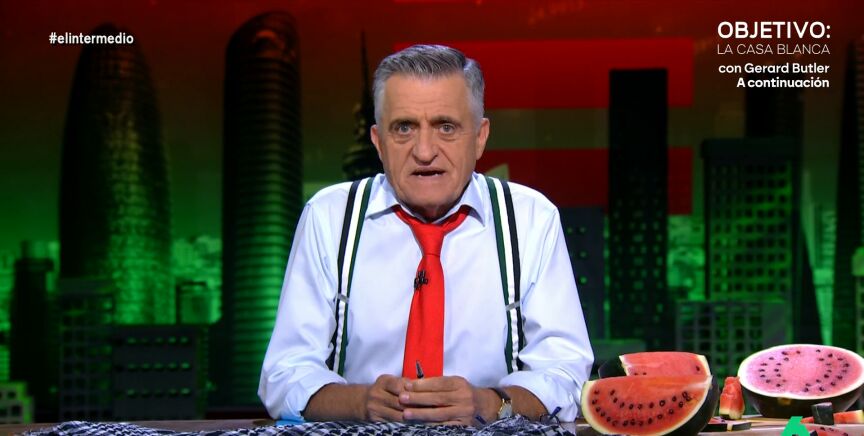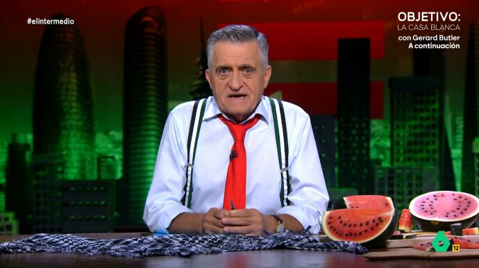 El presentador de El Intermedio comenta que, en su discurso, Ayuso "no ha podido meter más cosas" en 30 segundos, desde acusar a la izquierda de estar en contra de la paz al "comodín de Bildu". "Está Maduro llorando diciendo 'me está ninguneando'", ironiza.