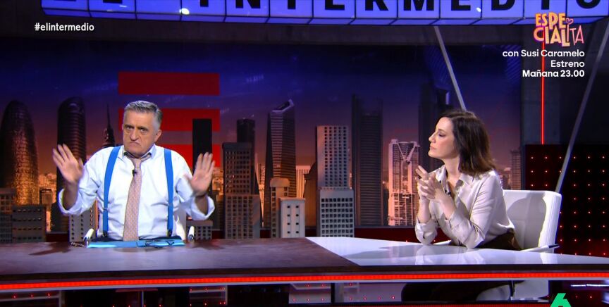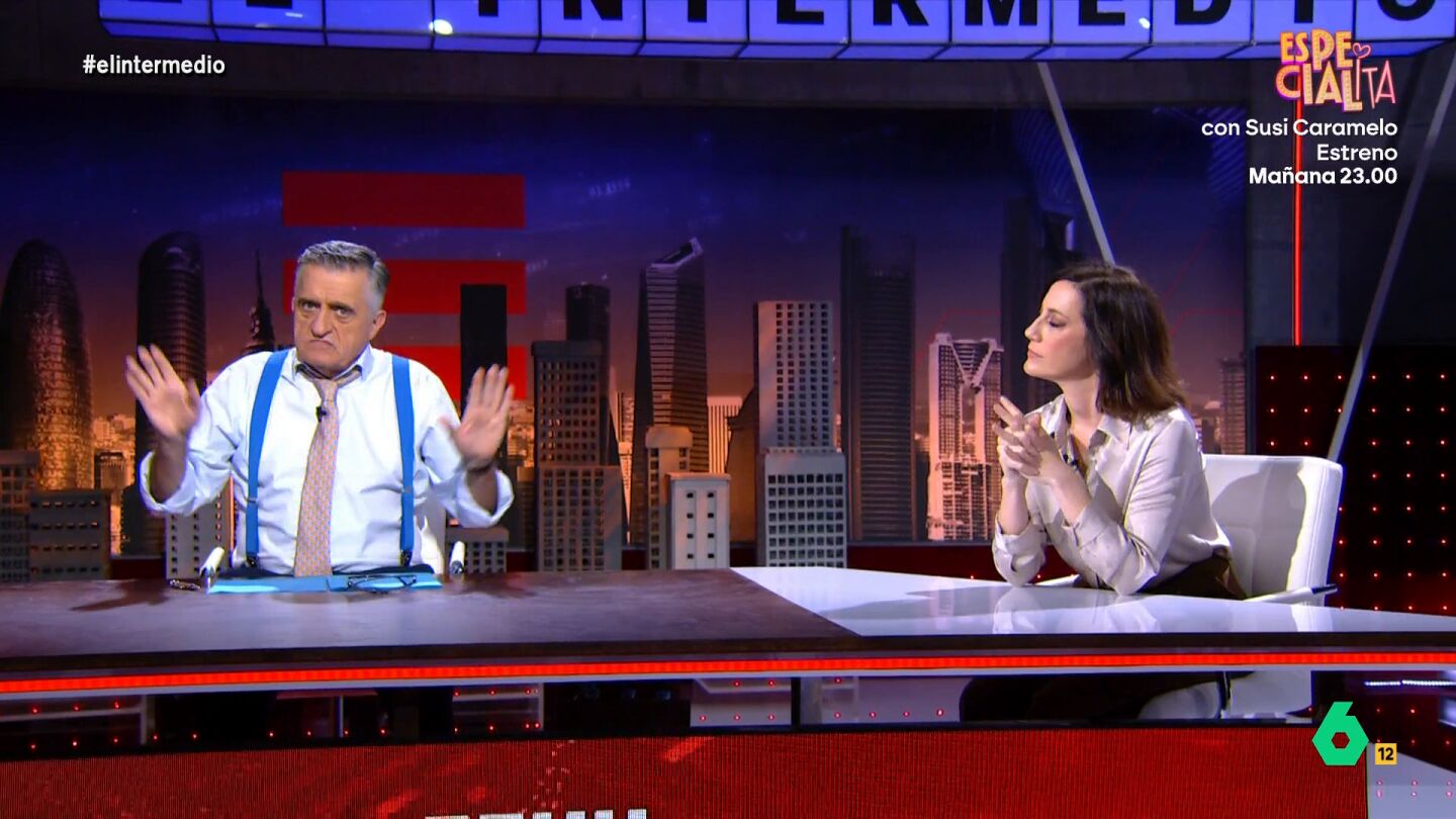 Después de que El Gran Wyoming critique que Isabel Díaz Ayuso quiera darle una medalla a EEUU, Cristina Gallego aparece en el plató de El Intermedio para hacerle una petición al presentador. "¿Qué te importa a quién le dé Ayuso una medalla?, ¡deja de meterte con EEUU porque nos vas a meter a todos en un lío más gordo del que ya tenemos encima", pide Cristina Gallego, que comienza su irónico análisis en el plató pidiendo a Donald Trump que no les mate.