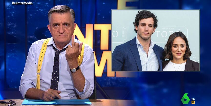 Por otro lado, el presentador de El Intermedio analiza que el Gobierno ha anunciado la creación de un futuro impuesto a las grandes fortunas. "Algunos pensarán que es una medida a la altura del Gobierno más progresista de nuestra democracia, pero en junio, el PSOE rechazó la propuesta de Unidas Podemos de crear un impuesto a las rentas más altas", destaca Wyoming. "Pero bueno, no pasa nada", afirma Wyoming, que se pregunta "quién no ha cambiado una opinión de junio a septiembre": "Mirad Tamara Falcó, en junio soñaba con ponerse un anillo en el dedo anular, y en septiembre ha terminado sacándole el dedo corazón (una peineta) a su novio".