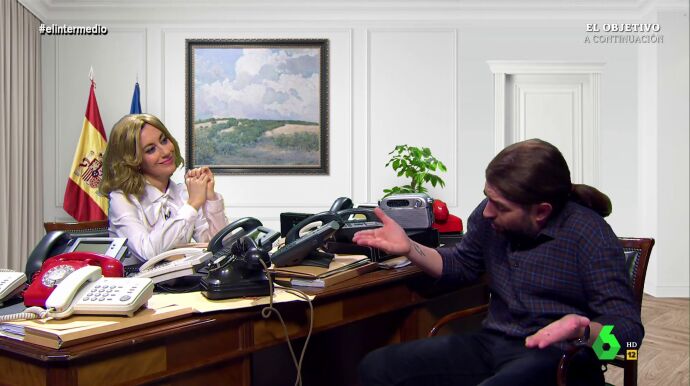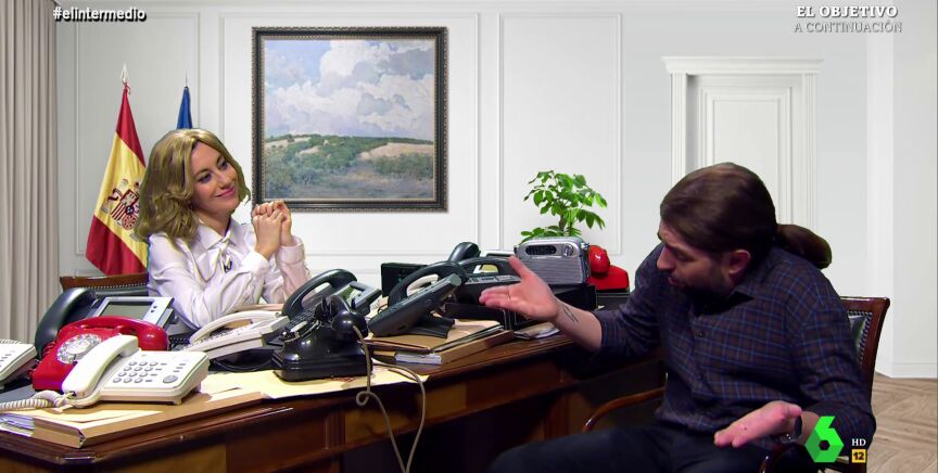 Así se aprecia en este 'reencuentro' que han protagonizado en El Intermedio. "No sabía que querías formar parte del proceso de escucha. Cuando dirigías el partido no escuchabas mucho a lo demás", le dice Cristina Gallego -convertida en Yolanda Díaz- a un Dani Mateo que se parece mucho a Pablo Iglesias. A lo que este responde: "Claro me interesa el proceso de escucha, sobre todo que me escuchen a mí".