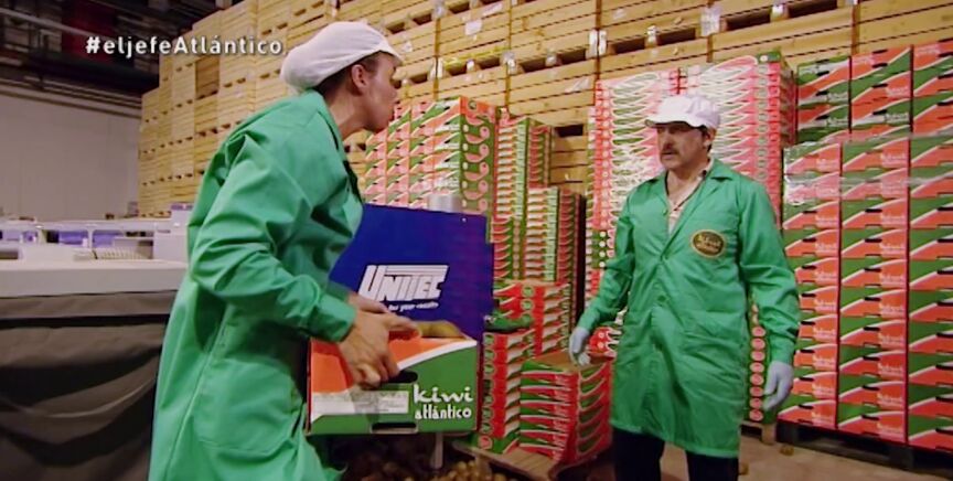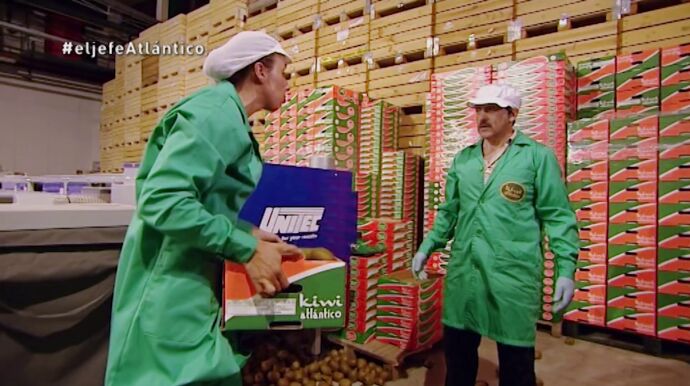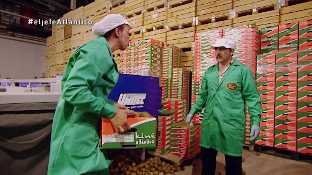 En su primera jornada, Carlos trabajó en el departamento de empaquetado, donde se encontró con Lucía, una trabajadora con muy poca paciencia y mucho carácter. La empaquetadora se quejaba de le la torpeza del gerente: "Le veo muy lento y las manos muy torpes". Pero el momento más tenso se produjo cuando el jefe hizo que se cayeran varias cajas de kiwis, echando a perder una gran cantidad de fruta. "Por mis huevos te pones las pilas o te pones las pilas", le dijo la trabajadora.