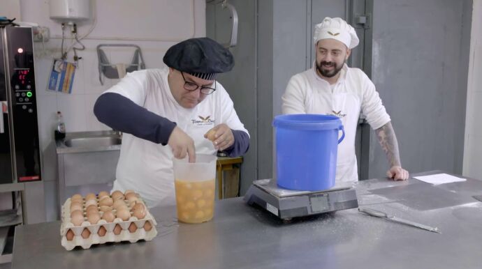 Ahora llega su turno y resulta ser todo un desastre. El empleado demuestra gran paciencia con su ayudante, perouna cosa es la paciencia y otra, el pasotismo. Rober ha metido la mano para sacar las cáscaras de huevo que se han caído en la mezcla, algo que va en contra de las normas de higiene y Diego no ha dicho ni una palabra al respecto ni ha tomado ninguna medida.