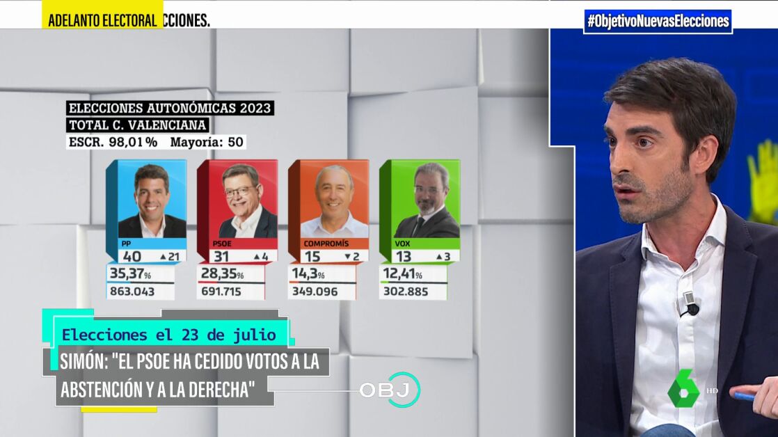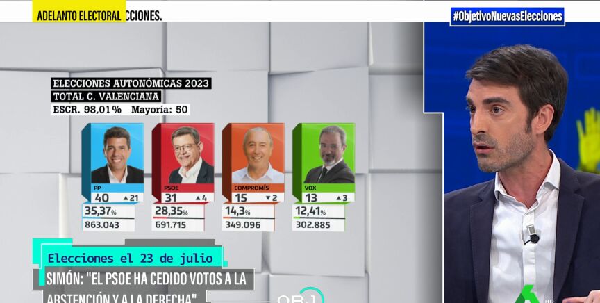Pablo Simón ha analizado los resultados de las elecciones municipales y autonómicasdel 28M. El periodista ha indicado que es importante no hacer "una falacia ecológica" pensando que "todo ha sido por la descomposición de la izquierda".