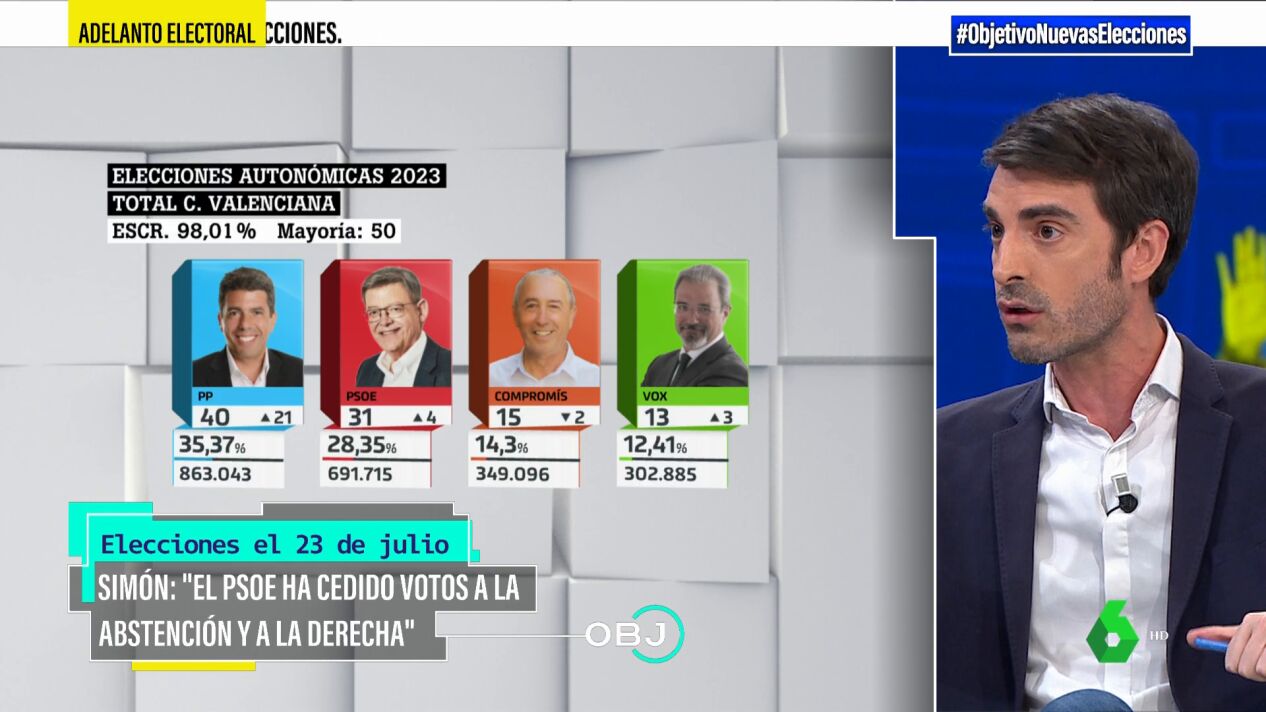 "No hagamos una falacia ecológica de pensar que todo ha sido por la descomposición del aliado de la izquierda", indica Pablo Simón. El periodista aclara cuál cree que es el error que ha cometido el PSOE en las elecciones del 28M.