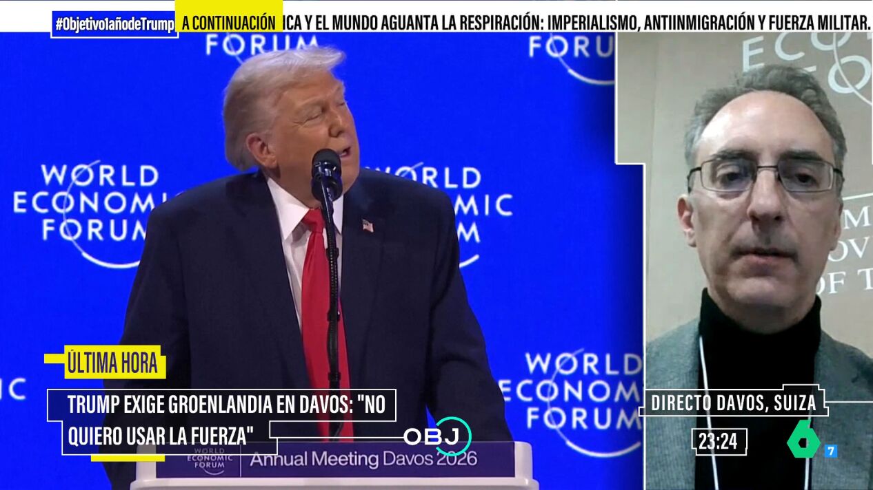 El presidente de Estados Unidos (EEUU), Donald Trump, ha sido este miércoles el protagonista en el Foro de Davos, en Suiza, donde ha estado el periodista Andrea Rizzi, quien ha hablado en el especial de El Objetivo sobre el primera año del segundo mandato del presidente estadounidense.