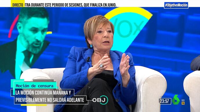 Durante el debate de El Objetivo sobre la moción de censura, la exdiputada popular critica la candidatura de Ramón Tamames para presidir el Gobierno. "No es Abascal ni Vox quien se ha presentado a una moción de censura", asegura.
