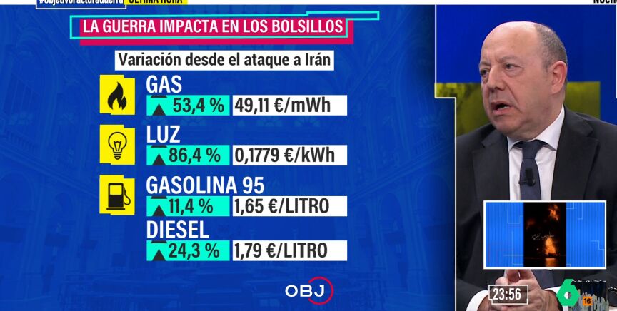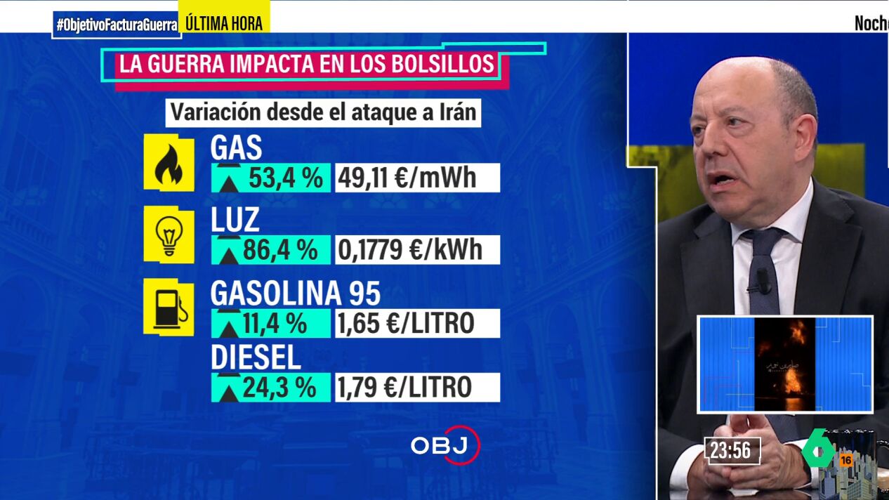 El economista Gonzalo Bernardos ha analizado el impacto económico de la guerra en Oriente Medio en el especial 'El Objetivo: la factura del caos' y ha analizado los que se conocen como efecto cohete y efecto pluma. "El efecto cohete es cómo te pueden subir los precios de la gasolina sin que a ellos les suba el precio del petróleo. Porque los precios del petróleo siempre se miden a futuro y tú lo compras con bastante antelación", ha señalado el experto.