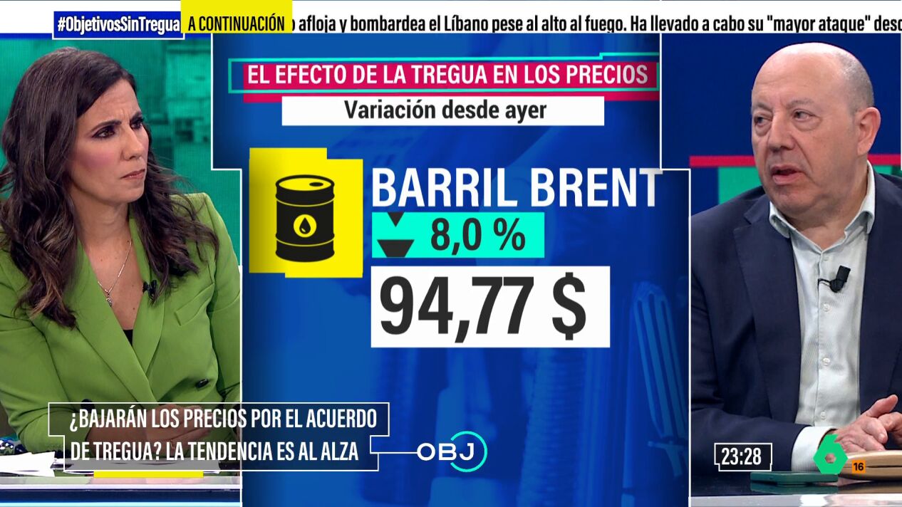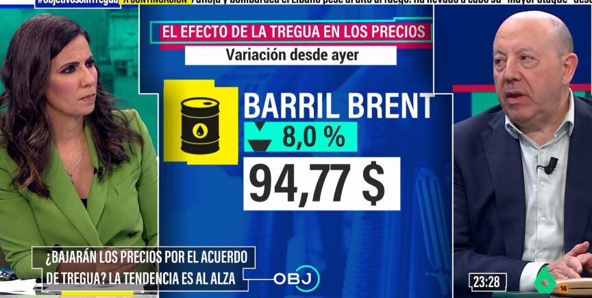 ¿Por qué? La explicación está en el carburante, ya sea gas natural o petroleo, "va a tener precios más altos, porque la oferta va a ser inferior". Todo en un día a día que es "completamente imprevisible" por una sencilla razón para el economista y analista de laSexta: "Porque se mueve según los dictados de Trump". Cuando Trump anuncia una tregua, el barril de Brent baja, "incluso se desploma", pero cuando vuelven a lanzar bombas, ese precio sube.