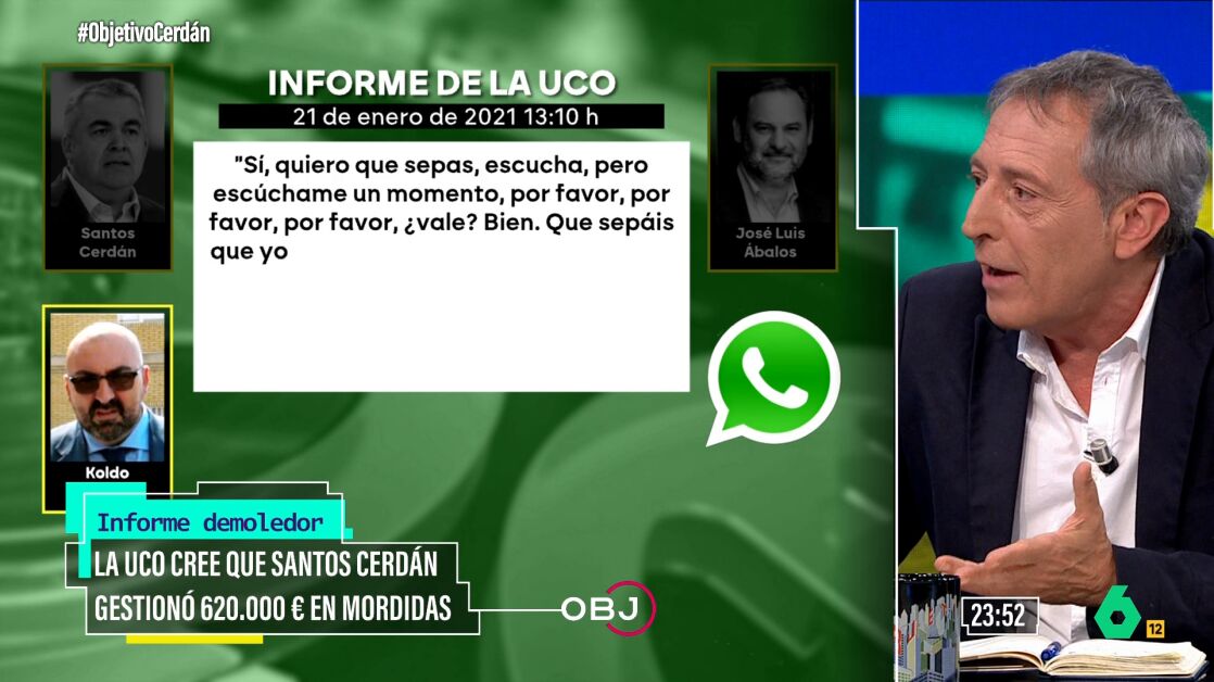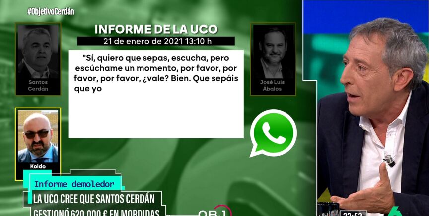 Miguel Ángel Campos, periodista de la Cadena Ser, ha estado en el Objetivo de Ana Pastor con motivo del especial por el informe de la UCO que sitúa a Santos Cerdán, ya exsecretario de organización del PSOE, como el presunto gestor de las supuestas mordidas y adjudicaciones en el marco del caso Koldo.
